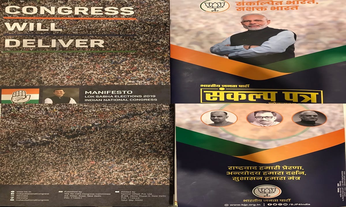 कांग्रेस ने अपने घोषणा पत्र में भी पूर्व पीएम इंदिरा गांधी, राजीव गांधी, कांग्रेस की वरिष्ठ नेता सोनिया गांधी और पूर्व पीएम मनमोहन सिंह की भी फोटो नहीं लगाई है. कांग्रेस के पूरे घोषणा पत्र में राहुल की कुल 7 तस्वीर लगाई है. वहीं बीजेपी ने अपने घोषणा पत्र में पीएम मोदी की कुल 6 ही तस्वीर लगाई हैं. कांग्रेस ने ‘हम निभाएंगे’ और भाजपा ने ‘संकल्पित भारत, सशक्त भारत’ घोषणा पत्र का नाम दिया है. कांग्रेस का 54 पेज तो भाजपा का 50 पेज का घोषणा पत्र है.