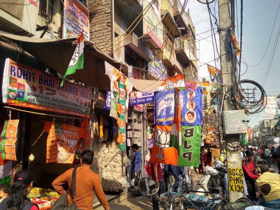 दिल्ली के सदर बाजार में लगे विभिन्न पार्टियों के पोस्टर | शुभम सिंह