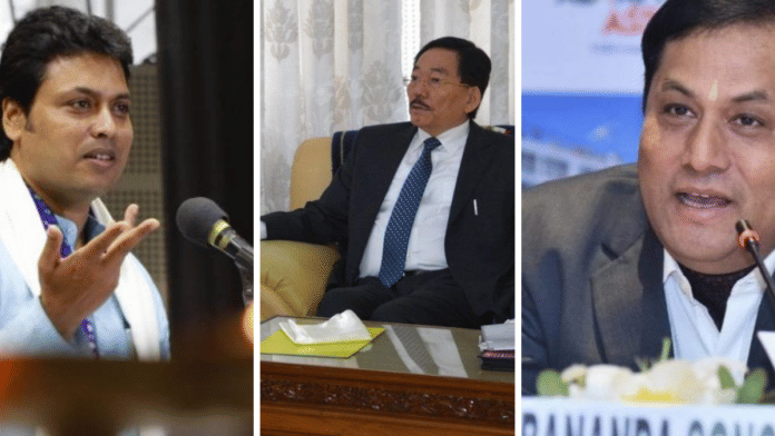 त्रिपुरा में भाजपा के मुख्यमंत्री बिप्लव देव हैं और यहां भी गठबंधन की सरकार है.त्रिपुरा में 25 साल से लगातार सरकार चला रहे लेफ्ट के ‘किले’ को बीजेपी ने ढहाया. भाजपा और इंडिजिनस पीपुल्स फ्रंट ऑफ त्रिपुरा (आईपीएफटी) गठबंधन को 59 सीटों में से 43 सीटों पर जीत मिली है.
