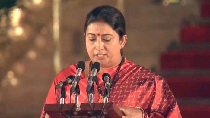 Smt @smritiirani takes oath as Union Minister. #ModiSwearingIn pic.twitter.com/NBoDH6Gj7t