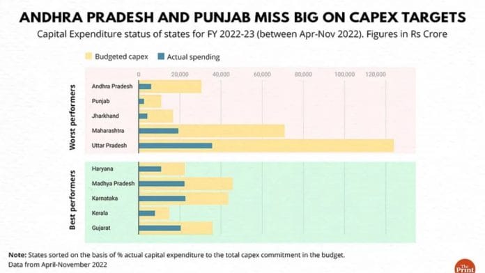 नई दिल्ली: जबकि मोदी सरकार देश में पूंजीगत संपत्ति के निर्माण पर अपने बजट 2022 के वादे को पूरा करने के रास्ते पर है, राज्यवार आंकड़ों के विश्लेषण से पता चलता है कि राज्य सरकारें अभी भी इस संबंध में पिछड़ रही हैं, खासकर – आंध्र प्रदेश और पंजाब – जैसे राज्य जो कि दूसरे राज्यों की तुलना में काफी बदतर हैं.