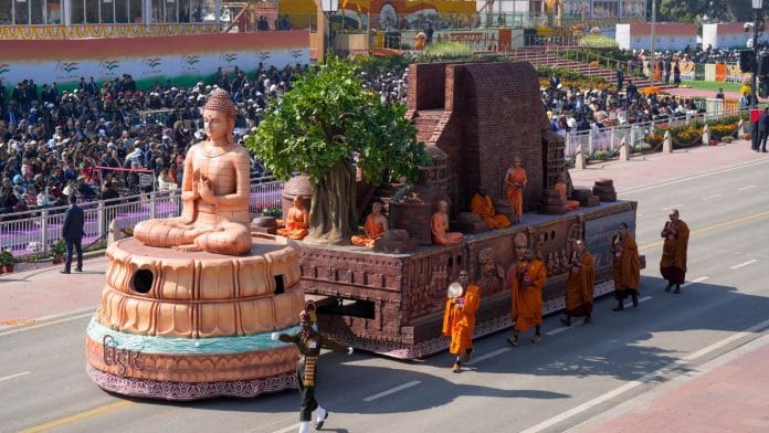‘स्वर्णिम भारत: विरासत और विकास’ के प्रमुख विषय के साथ, रंग-बिरंगी झांकी प्राचीन नालंदा विश्वविद्यालय के खंडहरों के साथ सबसे अलग दिखी. झांकी में, उसके खंडहरों के चारों ओर बौद्ध भिक्षुओं को बैठे हुए दिखाया गया है.