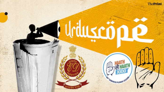 नई दिल्ली: नागालैंड, मेघालय और त्रिपुरा में विधानसभा चुनाव भले ही इस हफ्ते की सबसे बड़ी खबर रही हों, लेकिन छत्तीसगढ़ में कांग्रेस पार्टी के पूर्ण सत्र और आयोजन से पहले पार्टी के नेताओं पर प्रवर्तन निदेशालय (ईडी) की छापेमारी ने भी खूब सुर्खियां बटोरीं. उर्दू प्रेस ने इसे प्रमुख कवरेज दी.