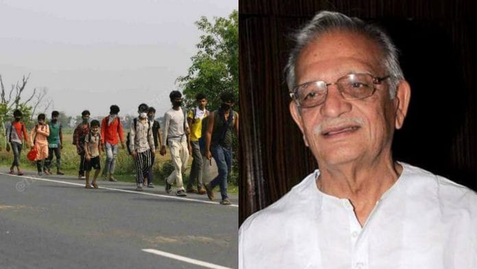 कुछ ऐसे कारवां देखे हैं सैंतालिस में भी मैनेये गांव भाग रहे हैं अपने वतन मेंहम अपने गांव से भागे थे, जब निकले थे वतन कोहमें शरणार्थी कह के वतन ने रख लिया थाशरण दी थीइन्हें इनकी रियासत की हदों पे रोक देते हैंशरण देने में ख़तरा हैहमारे आगे पीछे, तब भी एक क़ातिल अजल थीवो मज़हब पूछती थीहमारे आगे पीछे, अब भी एक क़ातिल अजल हैना मज़हब, नाम, ज़ात, कुछ पूछती है– मार देती हैख़ुदा जाने. ये बटवारा बड़ा हैया वो बटवारा बड़ा था – GulzarMigrating/Covid-19 – II – Batwara#LockdownPoems