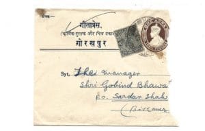 गीता प्रेस का लिफ़ाफ़ा – गोरखपुर से बीकानेर भेजा गया – जनवरी 1932– विरूपण में गीता प्रेस |