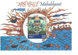 2017 में कुरुक्षेत्र में आयोजित अन्तर्राष्ट्रीय गीता महोत्सव के कार्यक्रम के दौरान केन्द्रीय संचार राज्य मंत्री मनोज सिन्हा ने महाभारत पर 18 डाक टिकट और तीन लघुचित्र पत्र (मिनिएचर शीट्स) जारी किये. ये आज़ादी के लगभग सत्तर वर्ष बाद जारी हुए महाभारत पर पहले डाक टिकट थे. इनमें गीता से सम्बंधित दो दृश्य हैं- पहले में राजस्थान की पिछवई शैली में ईश्वर के विराट स्वरुप की छवि अंकित है और दूसरे में आंध्र प्रदेश की कलमकारी शैली में रथ पर कृष्ण और अर्जुन को दिखाया गया है.