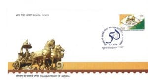 इसके बाद हरियाणा राज्य की स्थापना की रजत जयंती (1992) पर जारी प्रथम दिवस आवरण और स्वर्ण जयंती (2016) पर जारी प्रथम दिवस आवरण एवं टिकट पर भी रथ पर सवार अर्जुन और कृष्ण का चिरपरिचित चित्र दिखा.