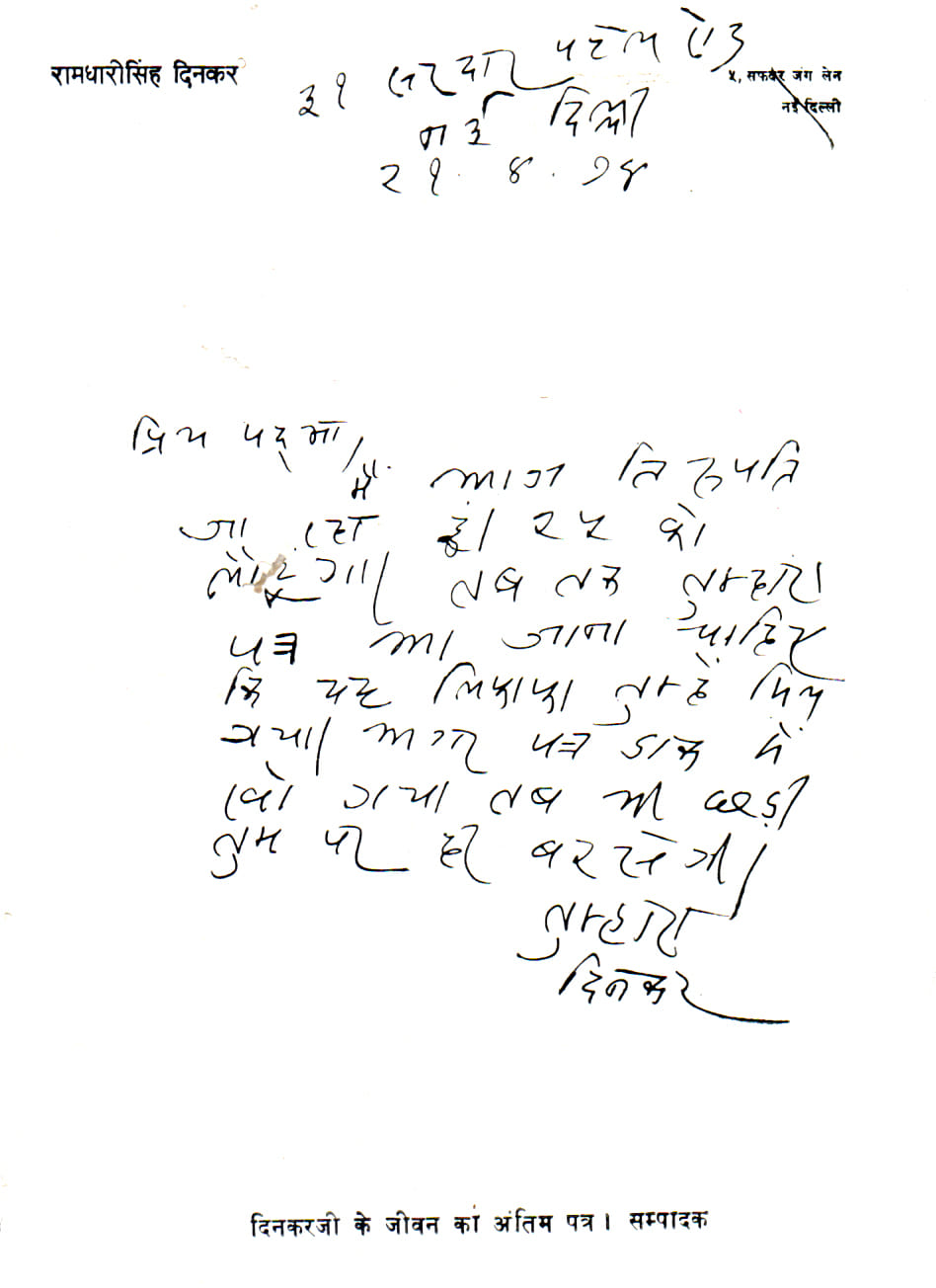 अपनी लेखनी की धार से दिनकर लगातार जनता और सत्ता के बीच लोकप्रिय हो रहे थे. देश ने उन्हें हिंदी की सेवा करने के लिए उनकी रचना उर्वशी के लिए 1972 में ज्ञानपीठ पुरस्कार से सम्मानित किया. संस्कृति के चार अध्याय के लिए साहित्य अकादमी पुरस्कार दिया गया. उन्हें भागलपुर विश्वविद्यालय का उप-कुलपति बनाया गया. भारत सरकार के हिंदी सलाहकार के रूप में भी उन्होंने अपनी सेवाएं दी.