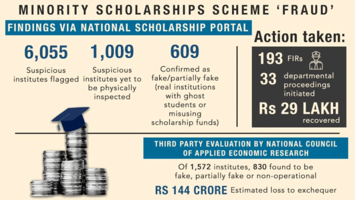 इसके अलावा, नेशनल स्कॉलरशिप पोर्टल पर भी कुछ गड़बड़ियां सामने आईं, जिनसे पता चला कि स्कॉलरशिप व्यवस्था के भीतर कहीं गहरी सड़न मौजूद है. इसके चलते अल्पसंख्यक मामलों के मंत्रालय ने पूरे देश में 6,055 संदिग्ध संस्थानों की एक बहुत बड़ी सूची की पहचान की.