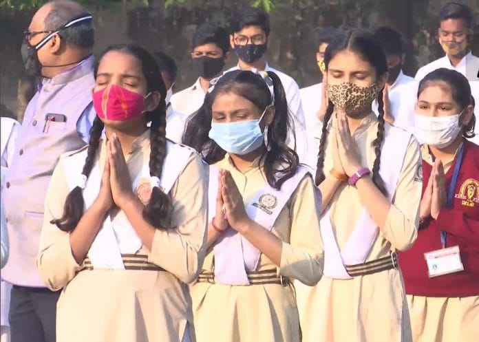 स्कूलों के सोमवार को खुलने पर छात्र मास्क पहने नजर आए. स्कूल में प्रवेश तथा निकास के समय उचित दूरी बनाए रखने के लिए स्वयंसेवक तैनात किए गए हैं और छात्रों की ‘थर्मल’ जांच की जा रही है .