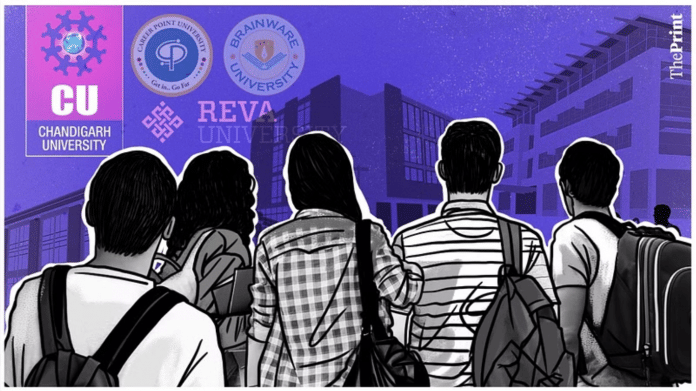 नई दिल्ली: चमकदार नई इमारतें, सजा संवरा लॉन, हंसते-खिलखिलाते छात्रों के चेहरे, प्लेसमेंट के लिए बड़ी-बड़ी कंपनियों के नाम- ये भारत के निजी विश्वविद्यालयों का वो चेहरा है जो उनके ब्रोशर और विज्ञापनों में चमकता नजर आता है. ऐसी यूनिवर्सिटीज की संख्या पिछले सात सालों में लगभग दोगुनी हो गई है.