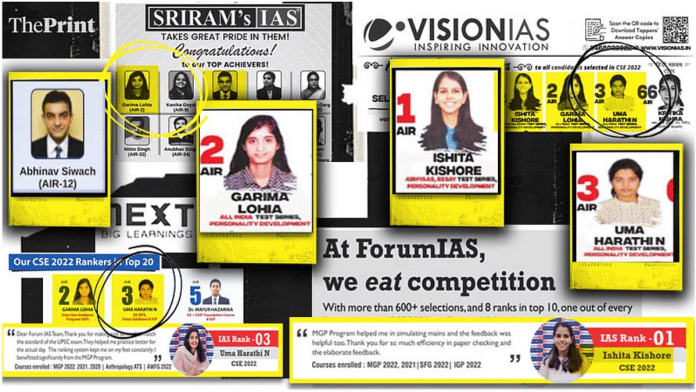 यूपीएससी कोचिंग उद्योग बढ़ रहा है. कोचिंग संस्थानों की प्रतिस्पर्धी दुनिया ऐसी है कि सफलता के लिए अक्सर कई माता-पिता होते हैं. किसी संस्थान की प्रतिष्ठा को मजबूत करने के लिए, कई यूपीएससी कोचिंग संस्थान अपनी सभी प्रचार सामग्री में एक ही टॉपर का उपयोग करते हैं, अक्सर उनकी अनुमति के बिना.