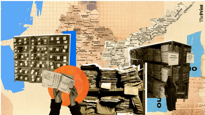 तेलंगाना राज्य अभिलेखागार की दीवारें, उनके द्वारा रखे गए दस्तावेजों की तरह ही, ढह रही हैं. निदेशक के कार्यालय के बाहर एक लीक करती हुई पाइप से एक बाल्टी में पानी टपक रहा है. फारसी और उर्दू में सदियों पुराने घिसे-पिटे रिकॉर्ड धूल भरे, अंधेरे, तंग कमरों में पड़े हैं. और 300 किलोमीटर दूर, राज्य की सीमाओं के पार, आंध्र प्रदेश राज्य अभिलेखागार के निदेशक काफी हद तक खाली लेकिन चमकदार नई इमारत में बैठे हैं. उनका शानदार नया कार्यालय उन कमरों से घिरा हुआ है जिन्हें अभी भरना बाकी है. वह अभिलेखीय कागजात के तेलंगाना से आने का इंतजार कर रहे हैं, जो उनके साथ साझा करने से मना कर रहा है.