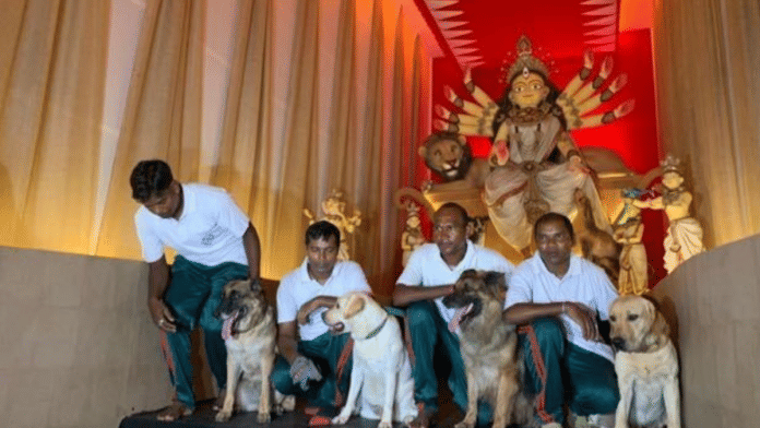 रविवार को कोलकाता पुलिस के डॉग स्क्वायड के चार कैनाइन सदस्य बिधान सारणी पूजा के उद्घाटन के अवसर पर मुख्य अतिथि थे.