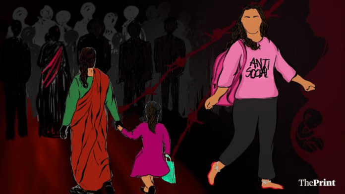 नई दिल्ली: अपनी बेबी पिंक कलर की टी-शर्ट पर “असामाजिक” लिखा हुआ और उसी तरह उसका चमकता हुआ गुलाबी बैग भी उसकी हिम्मत और विरोध को दिखाता है, वह लंबे-चौड़े वाक्यों में बात करती है, जब तक कि अचानक वह चुप नहीं हो जाती. उसके अल्ता रंगे पैरों में पायल की झंकार आने वाली खामोशी को भर देती है.