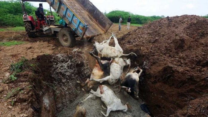 दिप्रिंट ने जब गुजरात और राजस्थान का दौरा किया, तो कई संक्रमित मवेशियों के शव सड़क के किनारे पड़े दिखे.
