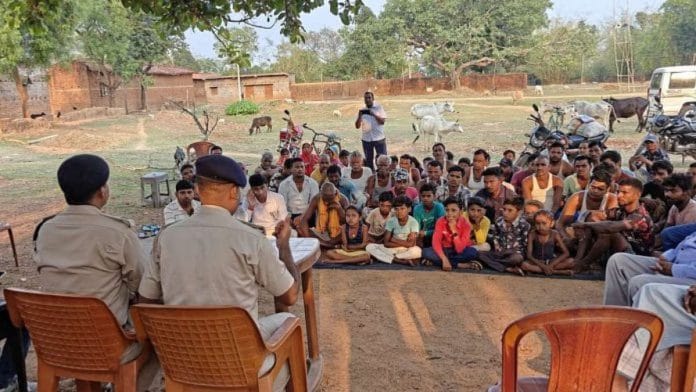 सियाटांड के पंचायत घाट पर आयोजित आउटरीच सेशन में 80 से अधिक ग्रामीण शामिल हुए, जिनमें से अधिकांश 20 वर्ष की आयु के आसपास के युवा थे. कुछ लोग प्लास्टिक की कुर्सियों पर सीधे बैठे थे, अन्य दीवारों से टिके हुए थे, कुछ पीछे खड़े होकर पुलिस के बोलने पर सिर हिला रहे थे.