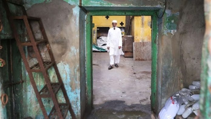 हाजी वसीम अपना घर दिखाते हैं जो अब स्टोरेज में बदल गया है | फोटो: मनीषा मंडल/दिप्रिंट