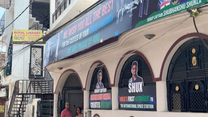 लखनऊ के त्रिवेणी नगर की एक संकरी गली में शुक्ला का दो मंजिला घर एक तीर्थ स्थल जैसा बन गया है, जहां शहर भर के लोग ग्रुप कैप्टन के माता-पिता से आशीर्वाद लेने आते हैं. नेवी-ब्लू एस्ट्रोनॉट सूट में उनके बड़े-बड़े कट-आउट गली में हर जगह लगे हैं. उस फोटो में वे आत्मविश्वास से भरे हुए दिख रहे हैं, अपनी बाहों को क्रॉस किए हुए हैं और उनके कंधे पर भारतीय ध्वज का पैच दिखाई दे रहा है. बाउंड्री वॉल पर एक बड़ा बैनर टंगा है. इस पर लिखा है “SHUX – इंटरनेशनल स्पेस स्टेशन पर भारत का पहला अंतरिक्ष यात्री”.