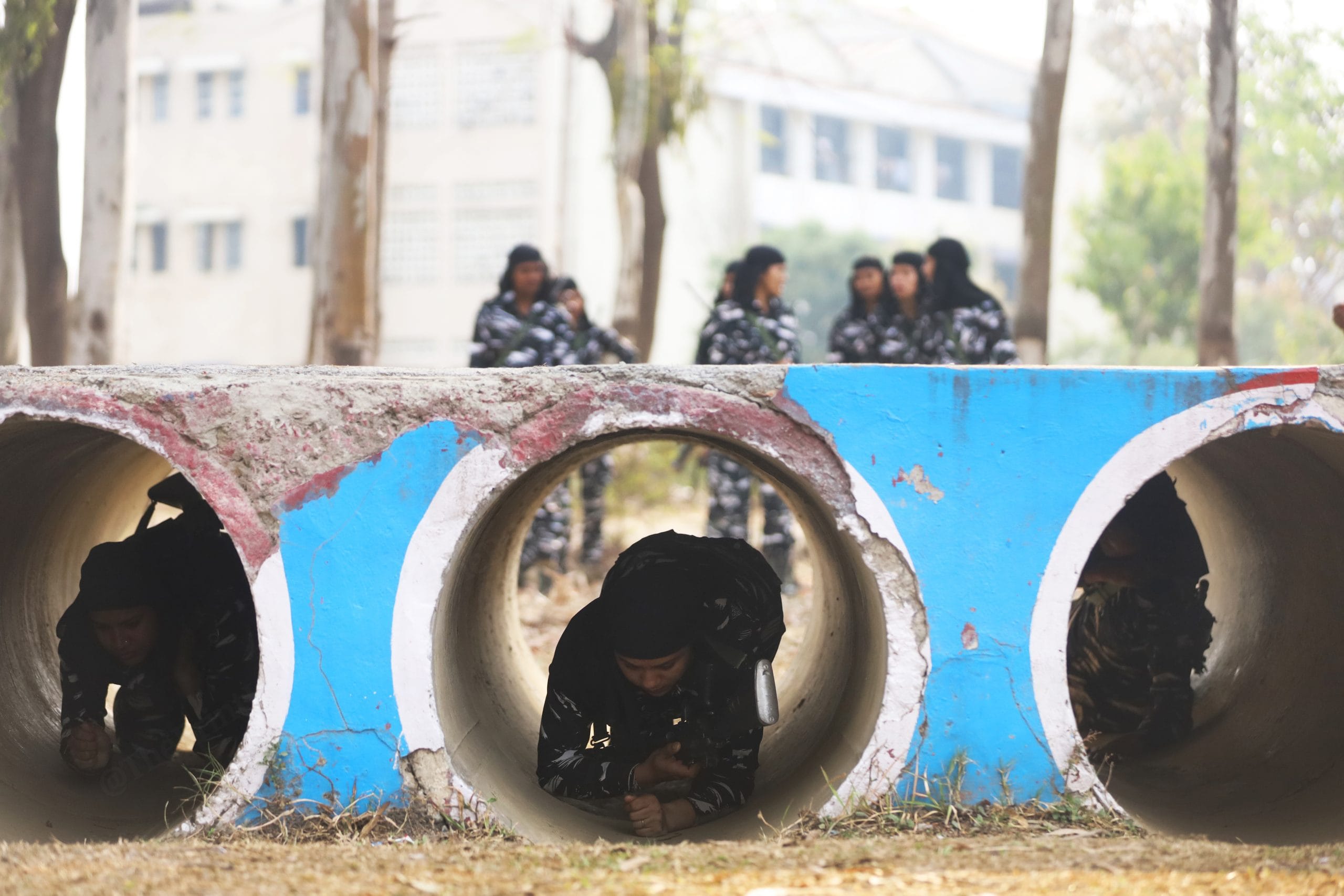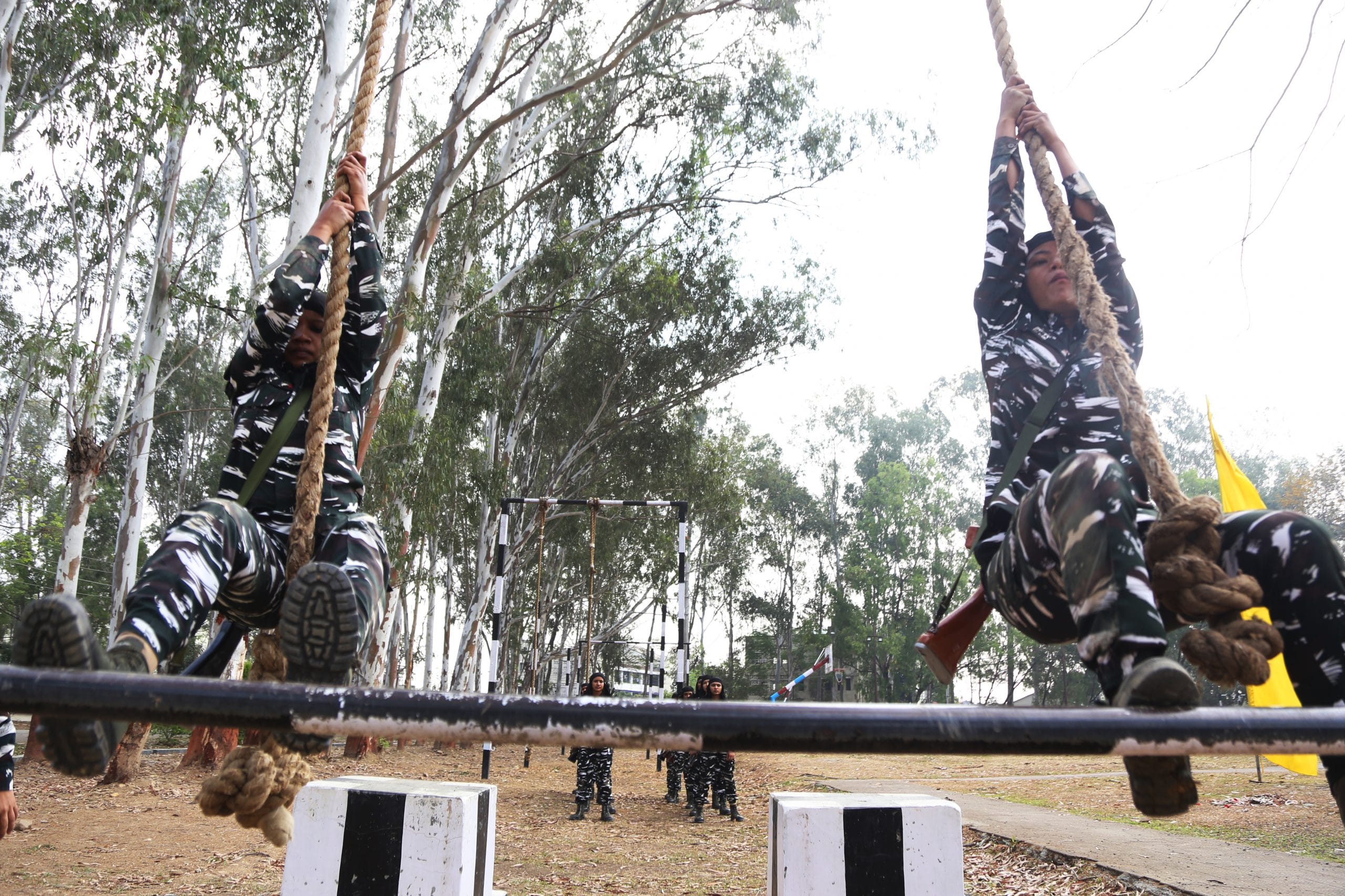 बासुमती और नोवी—दोनों की उम्र तकरीबन 20 साल है—दोनों बैटल ऑब्स्ट्रक्टल्स असॉल्ट कोर्स या बीओएसी के समय से ‘दोस्त’ हैं. उस्ताद के कहने पर छलांग लगाने के लिए 6 फुट ऊंची दीवार की ओर दौड़ती हैं. उनके चेहरे पर कोई भाव नहीं थे, दोनों महिलाओं ने एक साथ हवा में छलांग लगाई और एक ही साथ धरती पर धाक से कदम रखे और फिर उसी जोश से अगली बाधा को पार करने के लिए आगे बढ़ने लगीं.