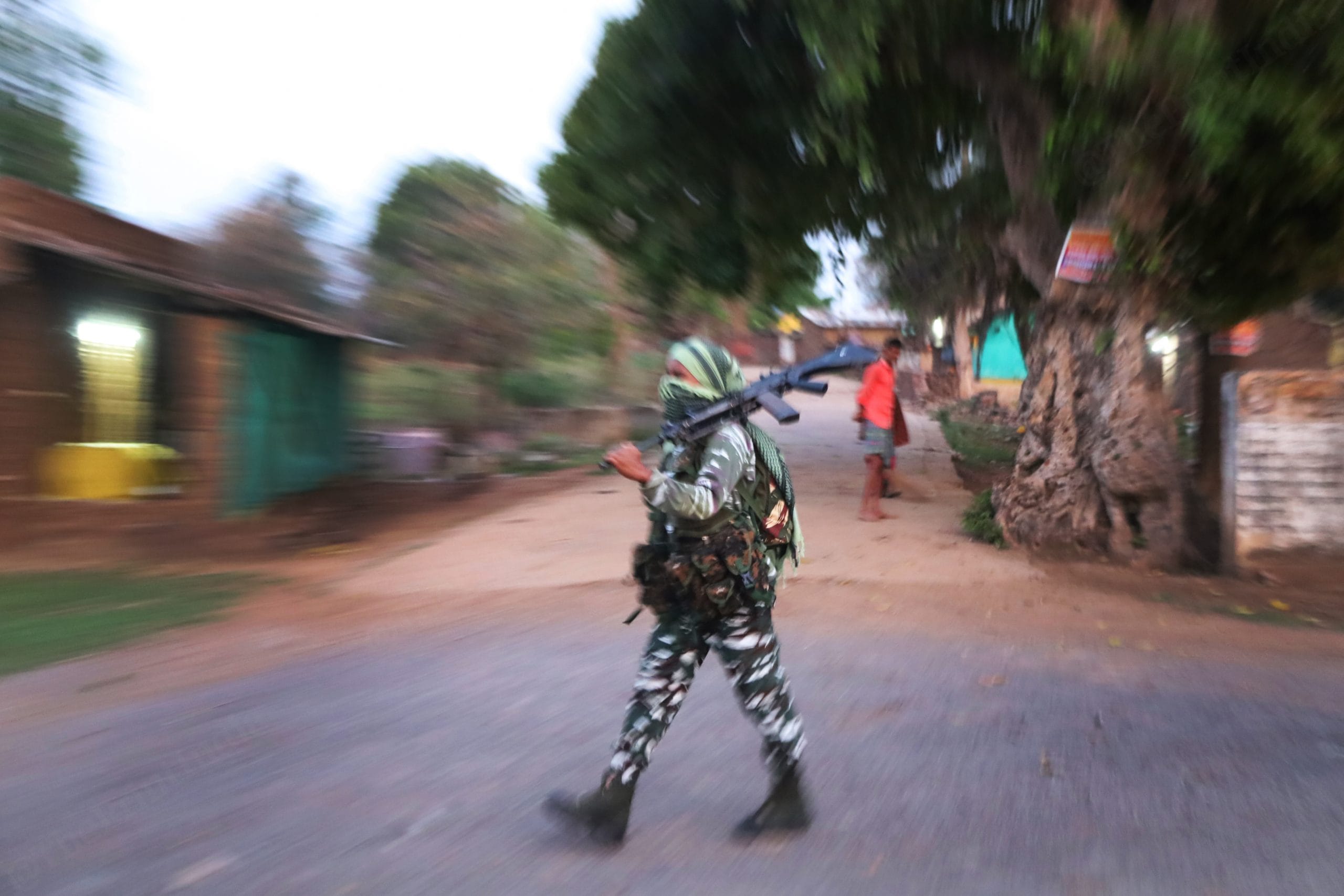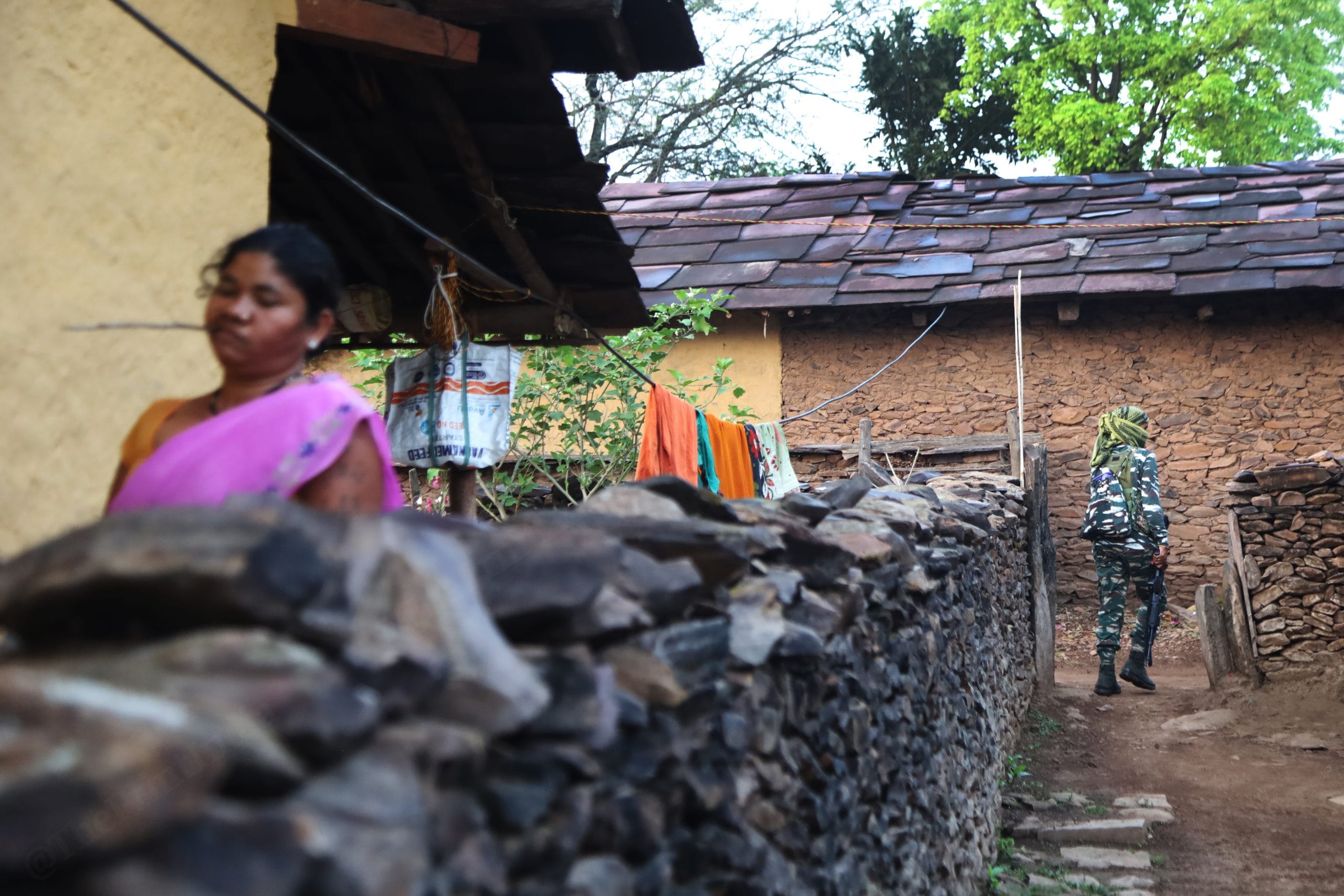 निशि के नेतृत्व में पहली सड़क खोलने वाली पार्टी टीम सूखे धान के खेतों के किनारों पर चलती है. वे रिहायशी इलाके में पहुंचते हैं जहां एक महिला घर के कामों में व्यस्त है. टीम की उपस्थिति ग्रामीणों के बीच कोई दिक्कत नहीं करती है. सीआरपीएफ का होना एक स्वीकृत हिस्सा है. ग्रामीण उन्हें एक बार भी नहीं देखते अपनी दुकान खोलते हैं, अपने बच्चों को स्कूल के लिए तैयार करते हैं और नलकों से पानी लाते रहते हैं सामान्य ज़िंदगी बसर करते हैं.