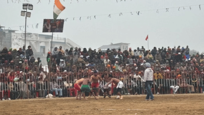 मोगा: पंजाब के मोगा ज़िले में एक मैदान के चारों ओर कंबल ओढ़े 2,000 से ज़्यादा आदमी बैठे, खड़े और भीड़ लगाए हुए हैं, और सर्कल-स्टाइल कबड्डी मैच देख रहे हैं. एकदम नए ट्रैक्टर, जिन्हें जीतने वाले घर ले जाएंगे, मैदान के पास खड़े हैं. एडिडास शॉर्ट्स पहने चौदह बिना शर्ट के खिलाड़ी कड़ाके की ठंड में “कबड्डी-कबड्डी” फुसफुसाते हुए रेड डाल रहे हैं. लेकिन खेल बिना किसी रुकावट के चलता रहे, इसकी सबसे बड़ी ज़िम्मेदारी स्कोर करने वालों की नहीं है. खिलाड़ियों पर पुलिसवाले कड़ी नज़र रख रहे हैं. वे जानते हैं कि कबड्डी अब यहाँ सिर्फ़ एक मामूली गांव का खेल नहीं रहा. यह वह नया मैदान है जहां पंजाब के गैंग खून-खराबे से अपने हिसाब-किताब बराबर करते हैं.