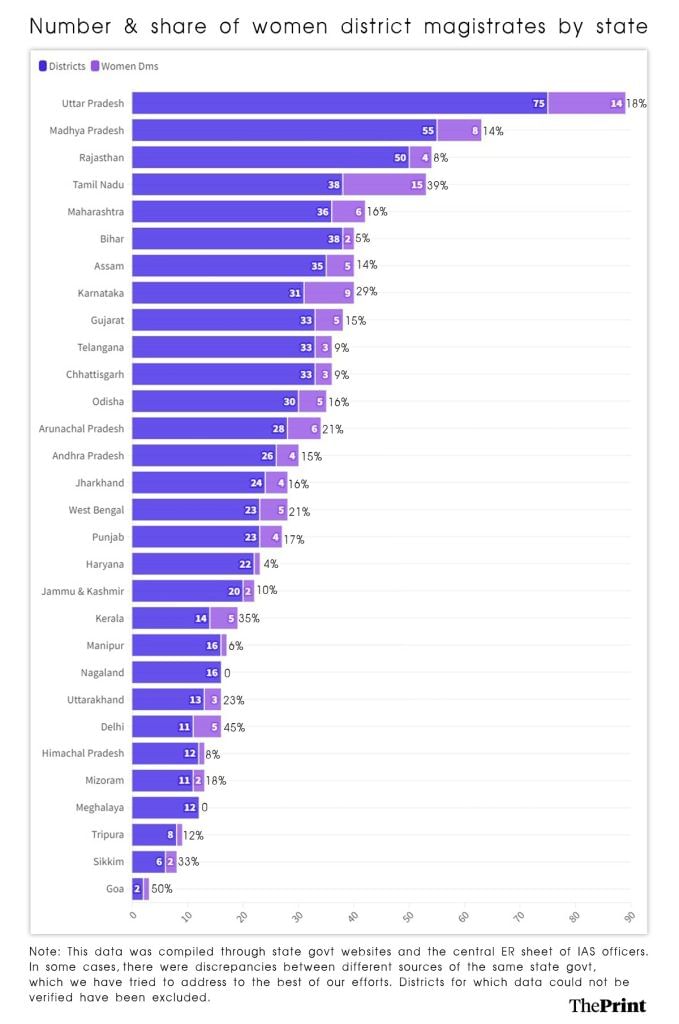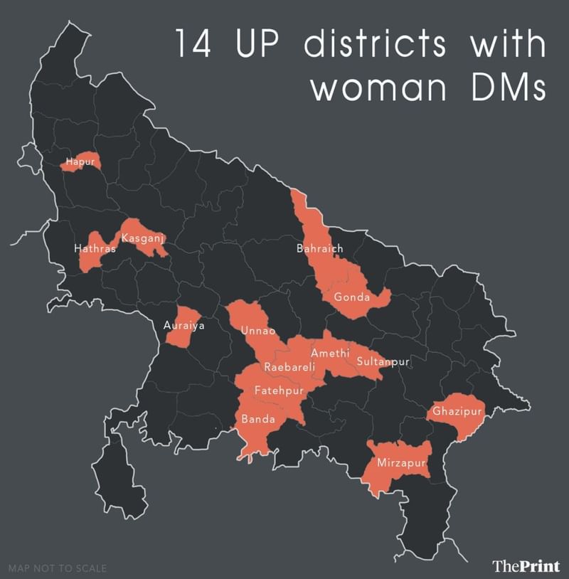 लेकिन उत्तर प्रदेश, जहां पारंपरिक रूप से महिलाएं सार्वजनिक क्षेत्र में लगभग नहीं दिखती हैं, कम से कम पूर्ण संख्या के मामले में आगे बढ़ रही है. वर्तमान में इसके 75 जिलों में 14 महिला डीएम हैं, जो 2022 में 12 से बढ़कर 16 प्रतिशत से लगभग 18 प्रतिशत हो गई हैं.