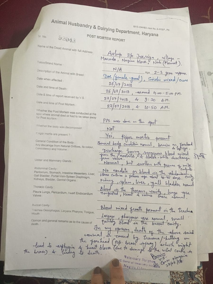 “सदमे और सर पर आई चोटों की वजह से उस पशु की मौत हो गयी। उन चोटों से शायद उसका दम घुट गया हो और बंद दिमाग के चलते, उसकी धड़कनें रुक गयी हों। चोटों को देखर ऐसा लगता है पशु को बहुत बुरी तरह पीटा गया था”, डॉक्टर भारद्वाज ने बताया।