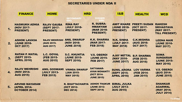 सरकार में बदलाव ने इन मंत्रालयों में शीर्ष नौकरशाहों के भाग्य को ज़्यादा प्रभावित नहीं किया । पिछले चार वर्षों में स्वास्थ्य मंत्रालय के चार सचिव रह चुके हैं, जिनमें से दो – लव वर्मा और बीपी शर्मा – ने अपने कार्यकाल का एक वर्ष भी पूरा नहीं किया था जब उन्हें क्रमशः सामाजिक न्याय मंत्रालय और डीओपीटी में भेज दिया गया।