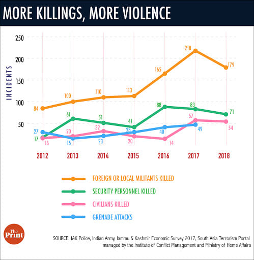 21 अक्टूबर को कुलगाम में ग्रेनेड फटने से सात नागरिकों की मौत हो गयी थी. ये घाटी में ग्रेनेड हमलों के बढ़ते प्रचलन का हिस्सा था. इस तरह के हमलों की संख्या 2012 में 27 थी, जो 2017 में बढ़कर 49 हो गई.