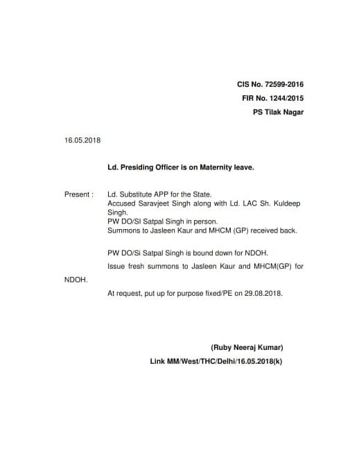 “मुकदमा स्टेट बनाम सर्वजीत सिंह का है. जसलीन मात्र एक गवाह है. हालाँकि उसे सामने आकर अपना बयान देने की ज़रुरत है और वह ऐसा करेगी भी.