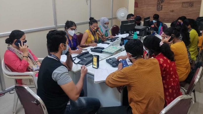 कोविड वार रूम के अंदर का यह एक आम नजारा है. पिछले महीने से, कोविड-19 की दूसरी लहर तेज होने के बीच, ये वार रूम कोविड मरीजों और अस्पतालों के बीच संपर्क का एक प्रमुख माध्यम बने हुए हैं.