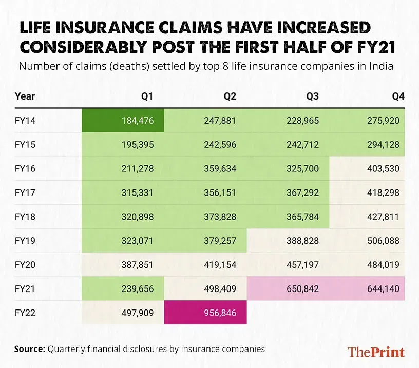 वित्तवर्ष 2020-21 की दूसरी और चौथी तिमाही के बीच जीवन बीमा दावों में काफी वृद्धि हुई है, जो मोटे तौर पर कोविड की पहली लहर के बाद के समय से मेल खाता है.