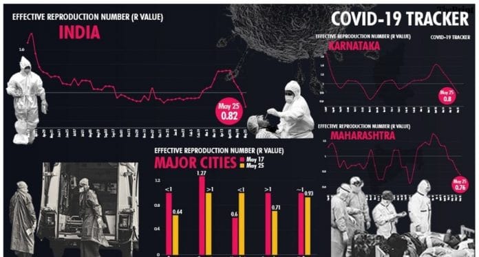 चेन्नई के इंस्टीट्यूट ऑफ मैथमेटिकल साइंस के शोधकर्ता सीताभ्र सिन्हा के मुताबिक, राष्ट्रीय स्तर पर R की कम वैल्यू कर्नाटक और महाराष्ट्र में स्थितियां बेहतर होने की वजह से हुई हैं.