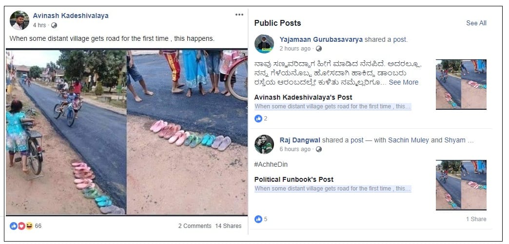 फोटो में आप देख सकते हैं कि नई सड़क प्राप्त होने के बाद गांव वालों में ख़ुशी है, बच्चे साइकिल चला रहे हैं, और लोग सड़क पर आने से पहले चप्पलें उतार रहे हैं.