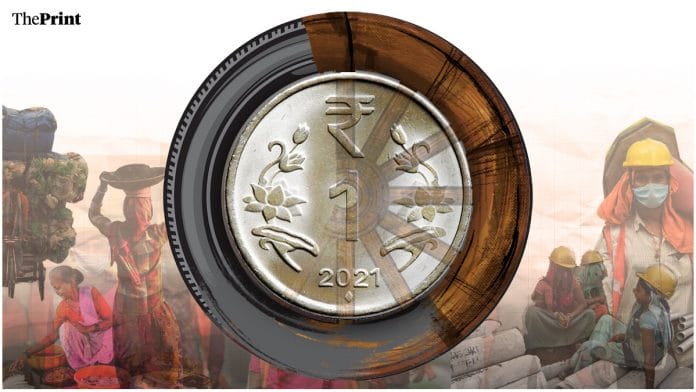 औपचारीकरण का दूसरा स्रोत ई-श्रम पोर्टल है. यह भारत में असंगठित कामगारों का पहला राष्ट्रीय डेटाबेस है. यह सामाजिक क्षेत्र की योजनाओं का लाभ असंगठित क्षेत्र के कामगारों तक पहुंचाने का काम आसान बनाता है. 30 अक्तूबर तक 5.3 करोड़ से ज्यादा कामगारों ने पंजीकरण करवा लिया था. पंजीकृत कामगारों की मासिक आय के आधार पर यह रिपोर्ट अनुमान लगाती है कि 13 लाख करोड़ रु. के करीब आधे का औपचारीकरण ई-श्रम पोर्टल के जरिए हुआ. इस मामले में कामगार ‘पंजीकृत’ हैं.
