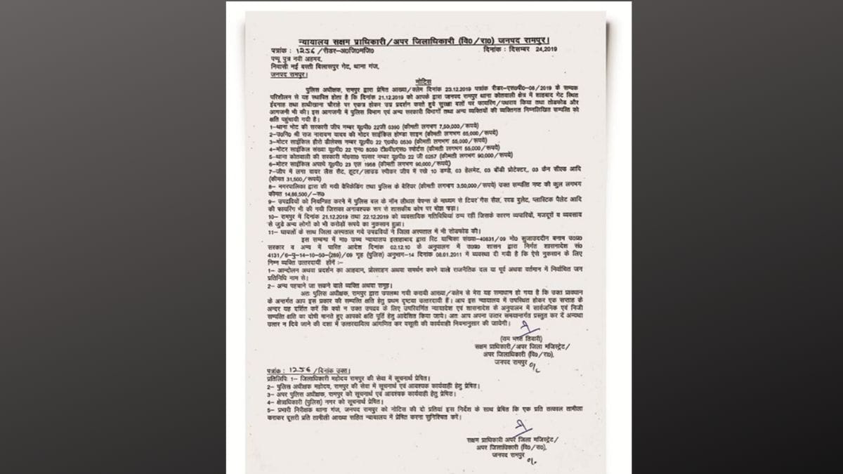 दरअसल हिंसा के बाद सीएम योगी का बयान आया कि सभी उपद्रवी चिन्हित किए जा रहे हैं, सीसीटीवी फुटेज और वीडियो के द्वारा उपद्रवियों की पहचान कर उनके खिलाफ सख्ती से कार्रवाई की जाएगी. उपद्रवियों की संपत्ति जप्त कर सार्वजनिक संपत्ति के नुकसान का हर्जाना वसूला जाएगा. इसके बाद से डीएम की ओर से तमाम जिलों में हिंसा आरोपियों के घर नोटिस भेजने की शुरुआत हो गई है.