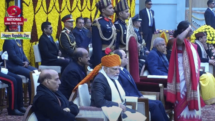 राष्ट्रपति द्रौपदी मुर्मू ने कर्तव्य पथ पर राष्ट्रीय ध्वज फहराकर पिछले साल पदभार ग्रहण करने के बाद पहली बार 74वें गणतंत्र दिवस समारोह की शुरुआत की.