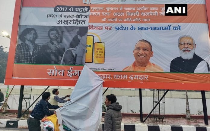 नई दिल्ली: पांच राज्यों के चुनावों तिथियों के घोषित होते ही लखनऊ नगर निगम आचार संहिता को लेकर सक्रिय हो गया है. निगम शहर में योगी मोदी समेत नेताओं के लगे पोस्टरों, बैनरों को हटाना शुरू कर दिया है.