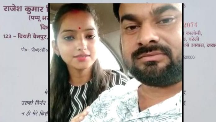 बरेली: बरेली की बिथरी चैनपुर सीट से विधायक राजेश मिश्रा उर्फ पप्पू भरतौल की बेटी साक्षी ने अपने पिता से ही जान का खतरा बताया है. दरअसल, साक्षी ने दलित युवक अजितेश कुमार के साथ शादी कर ली, जिसके बाद से दोनों धमकियां मिलने लगीं. दोनों ने सोशल मीडियी पर वीडियो जारी कर बरेली के वरिष्ठ पुलिस अधीक्षक से गुहार लगाई कि उसे उसके पिता और विधायक राजेश मिश्रा, भाई विक्की और पिता के एक सहयोगी से जान का खतरा है.