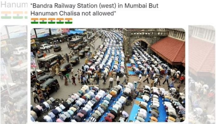 पोस्ट की तस्वीर, जिसे व्यापक रूप से साझा किया गया है, सुझाव के अनुसार हाल की नहीं है, बल्कि अगस्त 2012 में मुंबई के बांद्रा रेलवे स्टेशन के बाहर रमजान में की गई प्रार्थना की है.
