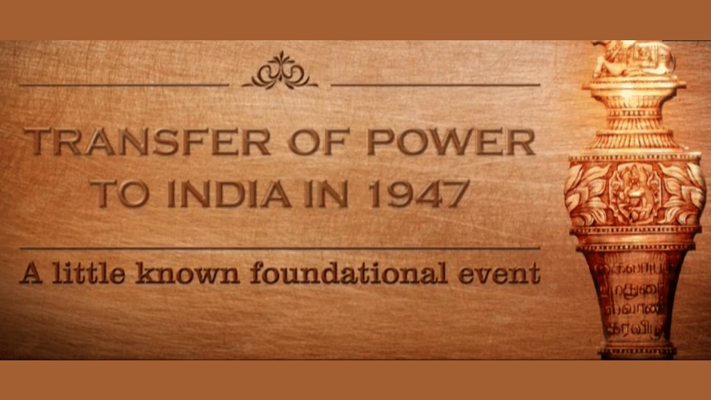 14 अगस्त, 1947 को सत्ता हस्तांतरण के समय, तमिलनाडु से तीन लोगों द्वारा विशेष रूप से सेंगोल लाया गया था – अधीनम के उप महायाजक, नादस्वरम वादक राजरथिनम पिल्लई और ओडुवर (गायक).