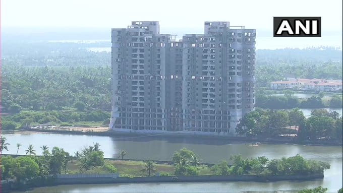 Maradu illegal flats demolition: First warning siren sounded for demolition of Jain Coral Cove complex.2 out of the 4 illegal apartment towers were demolished yesterday, today is the final round of the operation. #Kochi #Kerala pic.twitter.com/KRm7oDWDyg