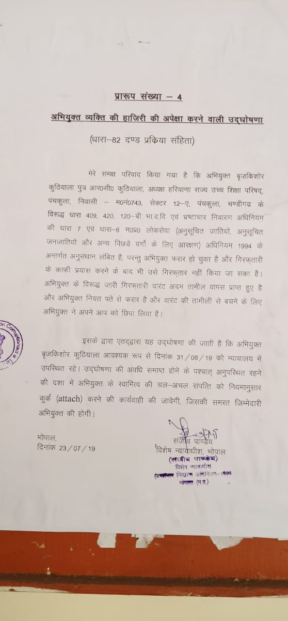 आगे ये भी लिखा है कि आरोपी अगर 31.08.2019 तक पेश नहीं होते तो उनके चल-अचल संपत्ति कुर्क करने की कार्यवाही शुरू हो जाएगी. इकनॉमिक ऑफेंस विंग (ईओडब्ल्यू) के स्पेशल डीजी केएन तिवारी ने दिप्रिंट से कहा, ‘बृज किशोर कुठियाला को सीआरपीसी के सेक्सन 82 के तहत भगोड़ा घोषित किया जा चुका है. अगर वो हाज़िर नहीं होते तो उनके ख़िलाफ़ एक और आपराधिक मामला दर्ज किया जाएगा.’