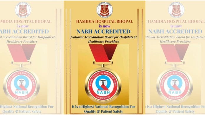 हमीदिया चिकित्सालय भोपाल मे दिनांक 01 एवं 02 अगस्त को NABH के विशेष दल द्वारा अस्पताल का निरीक्षण कर विभिन्न मानको में परखा गया था. जिसमे हमीदिया चिकित्सालय को मरीजों एवं कर्मचारियों के हितों के लिए अच्छे काम एवं उच्च सेवाओ के लिए अच्छे स्कोर के साथ एनएबीएच (नेशनल एक्रेडिटेशन बोर्ड आफ हाॅस्पिटल्स एण्ड हेल्थ केयर प्रोवाईडर्स) द्वारा यह एक्रेडिटेशन 2024 से 2028 तक के प्रमाण पत्र से मानित किया है.