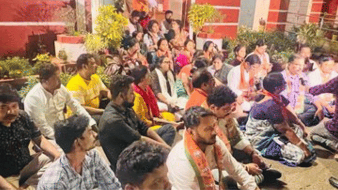 इसके बाद भाजपा युवा मोर्चा के कार्यकर्ता राजधानी थाना परिसर पहुंचे और भाजपा कार्यकर्ताओं पर लगे झूठे आरोपों को हटाने और उनकी रिहाई की मांग को लेकर धरना दिया.