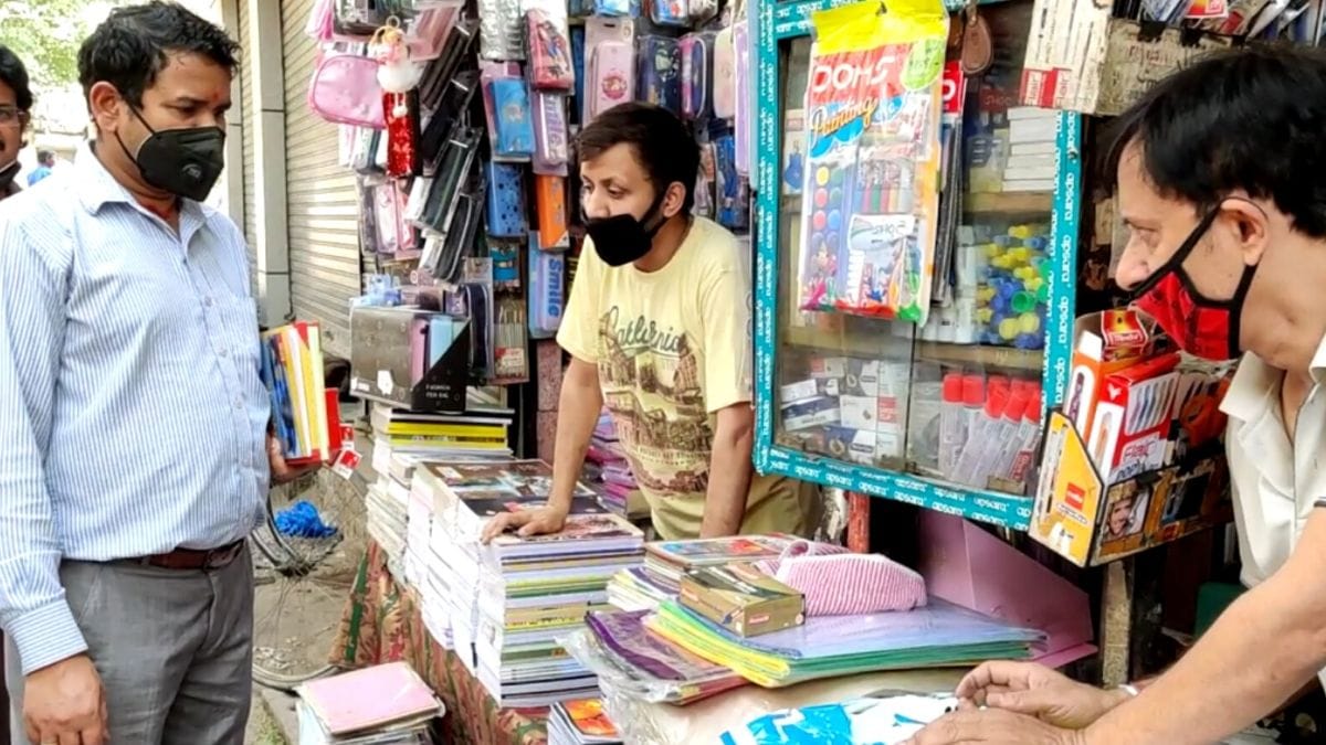 किताबों की दुकानों पर भले ही इक्का-दुक्का ग्राहक आ रहे हों, पर स्टेशनरी की दुकानें अभी भी सूनी पड़ी हैं. दुकानों के बहार चाक से कुछ दूरी पर वृत्त बनाये गए हैं. ताकि सोशल डिसटेंसिंग का पालन किया जा सके. दुकानदार भी मास्क और दस्ताने पहने नज़र आते हैं, पर ग्राहक नदारद हैं.