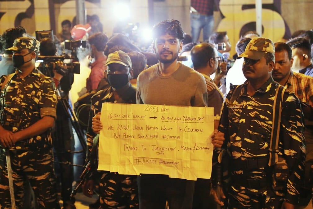 तिहाड़ के गेट नंबर तीन के बाहर सड़क की दोनों तरफ़ सौ से डेढ़ सौ लोग इक्ट्ठा थे. ‘निर्भया जिंदाबाद’ के साथ साथ लोगों ने ‘एक बेटी को न्याय मिला हर बेटी को न्याय दो के नारे लगाए.’ तरह तरह के नारों के बीच, एपी सिंह मुर्दाबाद के भी नारे लगे. सिंह आरोपियों के वकील रहे हैं जिन्होंने फांसी में देर कराने से जुड़ी कोई कसर बाक़ी नहीं छोड़ी.