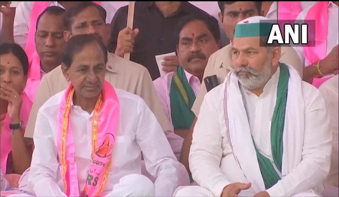 दिल्ली: तेलंगाना के मुख्यमंत्री केसीआर, TRS एमएलसी के. कविता सहित TRS पार्टी के नेताओं ने धान खरीद मुद्दे को लेकर केंद्र सरकार के खिलाफ 'धरना' प्रदर्शन किया। इस दौरान किसान नेता राकेश टिकैत भी मौजूद रहें।(1/2) pic.twitter.com/ll90CobCNg