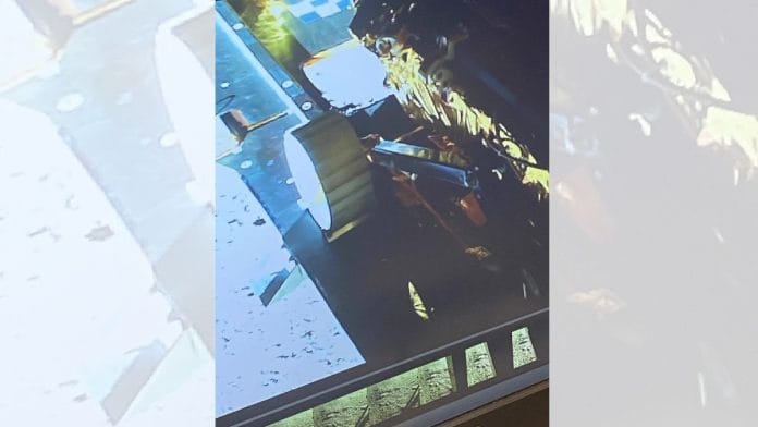 विक्रम से बाहर निकलने वाले छह पहियों वाले रोबोटिक वाहन प्रज्ञान की पहली तस्वीर भारतीय राष्ट्रीय अंतरिक्ष संवर्धन और प्राधिकरण केंद्र, जो एक सिंगल विंडो, स्वतंत्र, नोडल एजेंसी है अंतरिक्ष विभाग (DOS) में एक स्वायत्त एजेंसी के रूप में कार्य करती है, के चेयरमैन पवन के गोयनका ने साझा की है.